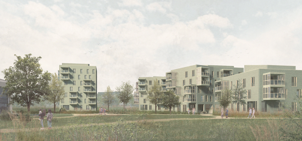 Het project bestaat uit 4 onafhankelijke gebouwen met ondergrondse parking, samen goed voor 63 appartementen. De appartementsgebouwen staan geschikt in een park.